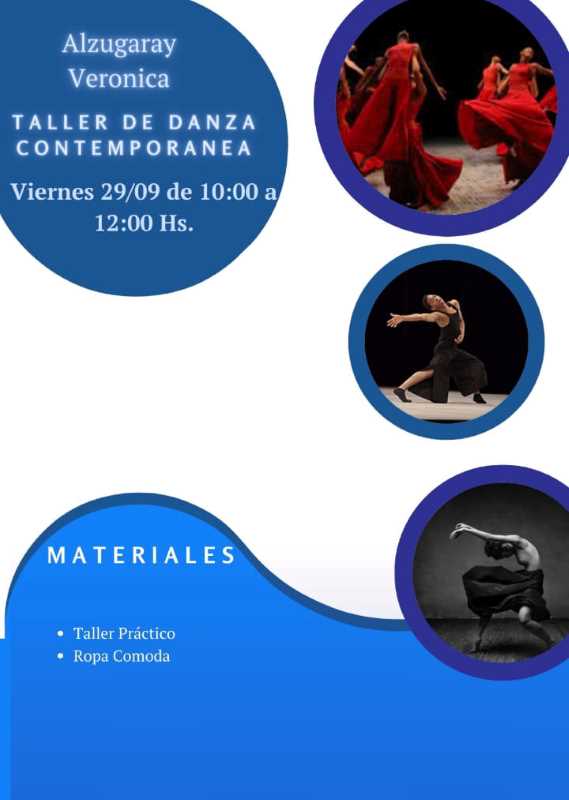 De 10 a 12 horas. Taller de Danza Contemporánea. A cargo de Verónica Alzugaray.