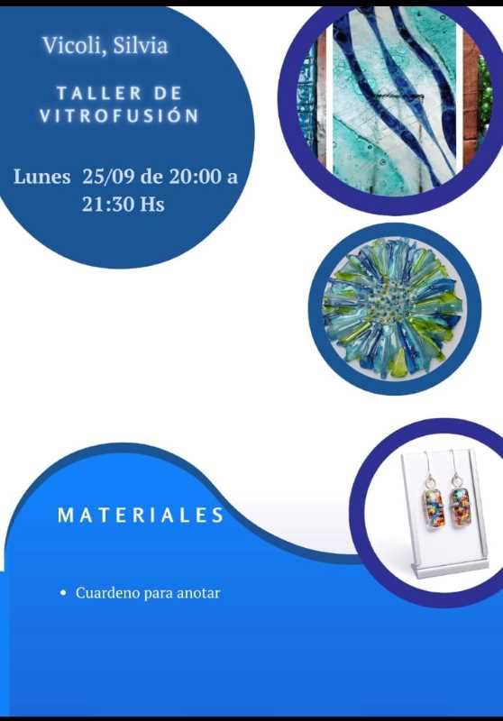 De 20 a 21:30 horas. Taller de Vitrofusión. A cargo de Silvia Vicoli.