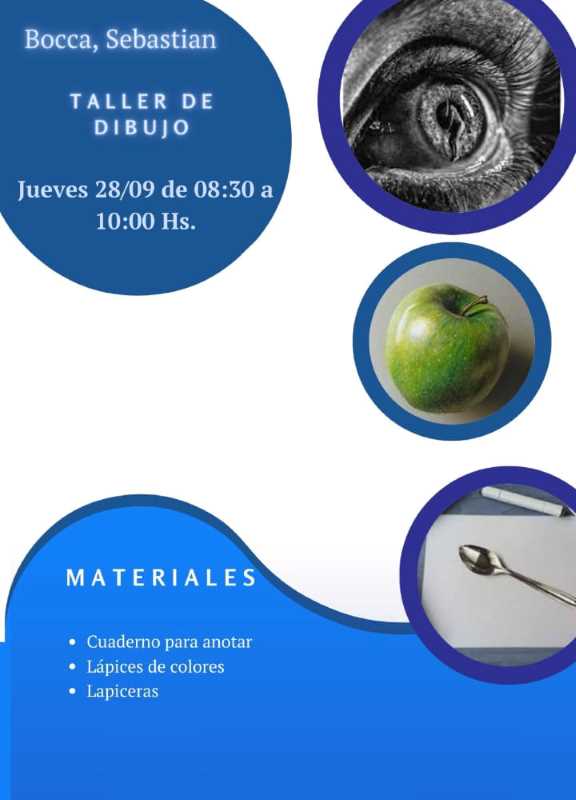 De 8:30 a 10 horas. Taller de Dibujo. A cargo de Sebastián Bocca.