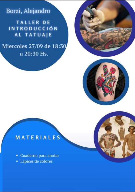 De 18:30 a 20:30 horas. Taller de Introducción al Tatuaje. A cargo de Alejandro Borzi.