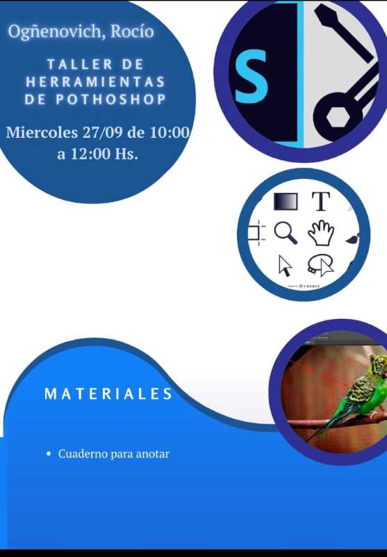 De 10 a 12 horas. Taller de Herramientas de Photoshop. A cargo de Rocío Ogñenovich.