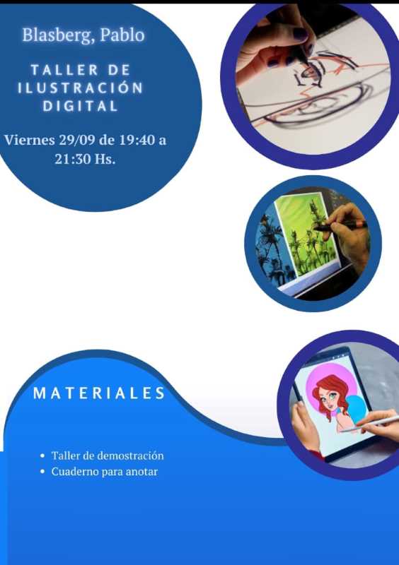 De 19:40 a 21:30 horas. Taller de Ilustración Digital. A cargo de Pablo Blasberg.
