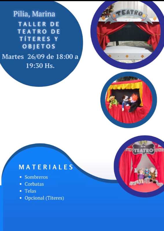De 18 a 19:30 horas. Taller de Teatro y Objetos. A cargo de Marina Pilía