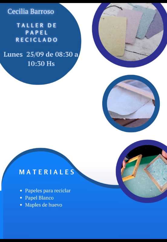 De 8:30 a 10:30 horas. Taller de Papel Reciclado. A cargo de Cecilia Barroso.