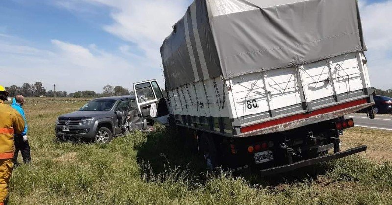 El camión embistió violentamente el lateral izquierdo de la pick up , que atravesaba la ruta , direccionandose ambos vehículos hacia la banquina y préstamo de la mano contraria.