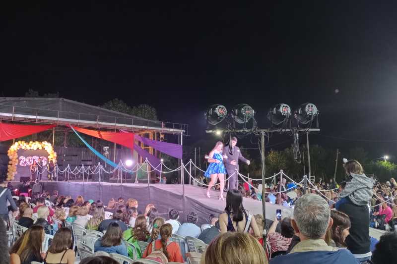 Parejas o tríos de egresados, o desfilando con amigos, amigas, padres, madres, parejas, hijos, sobrinos, primos, abuelos y abuelas, hermanos, los jóvenes y adultos de la promoción 2023 desfilaron sobre la pasarela instalada en el predio del Martín Ródriguez.