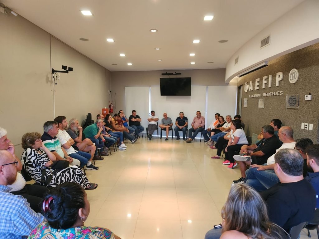 En el SUM de AEFIP Seccional Mercedes mantuvieron una reunión los representantes de la CGT Regional Mercedes, Navarro/S.A de Giles, junto al intendente de Mercedes, Juan Ustarroz, el ex Diputado Carlos Selva, representantes de la CTAA, CTAT, de UTEP y de Movimientos Sociales.