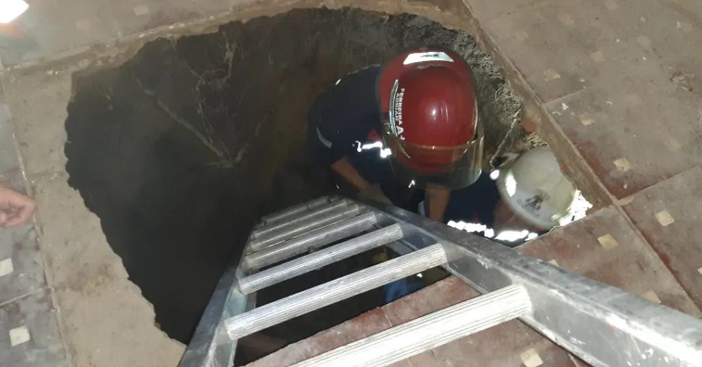 Tras el alerta intervinieron para rescatarlo del pozo de casi tres metros de profundidad que se generó en lo que era un viejo pozo ciego en desuso.