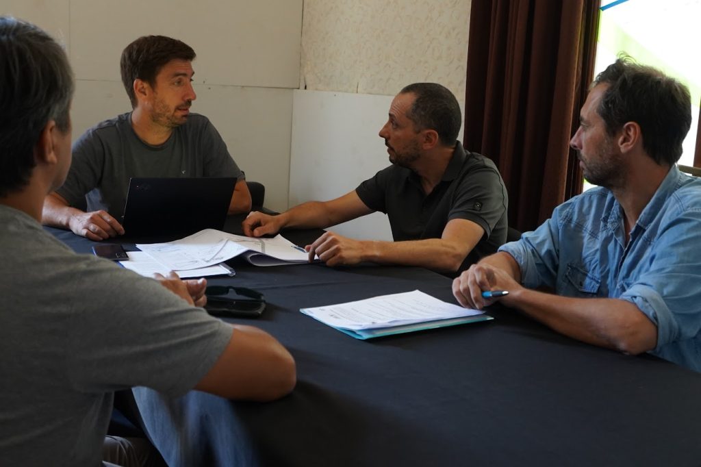 El jefe comunal Juani Ustarroz llevó adelante un encuentro con equipos técnicos de la Provincia de Buenos Aires que desarrollan tareas en el marco del Comité de la Cuenca del Río Luján. Estuvo presente también el secretario de obras municipal, Emanuel Pérez Carrera.