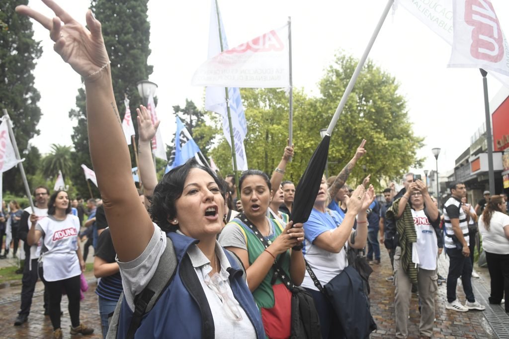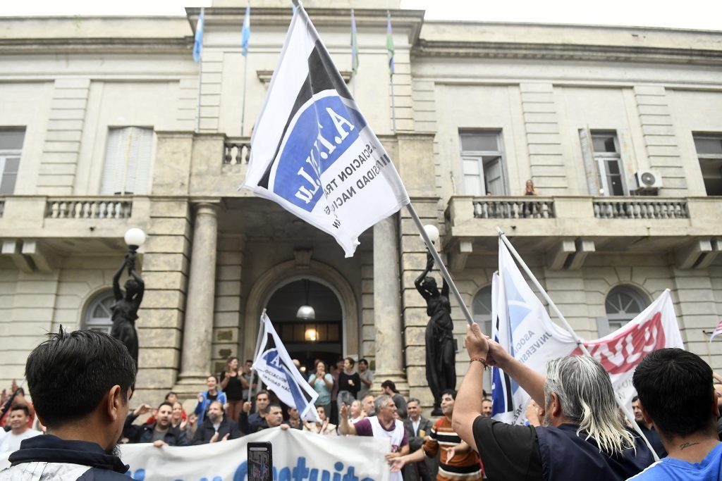 En el lugar se leyó un documento emitido por el Frente Sindical en el que las organizaciones denuncian la situación crítica de las universidades por el congelamiento presupuestario y reclaman negociaciones paritarias ante el desplome de los salarios.