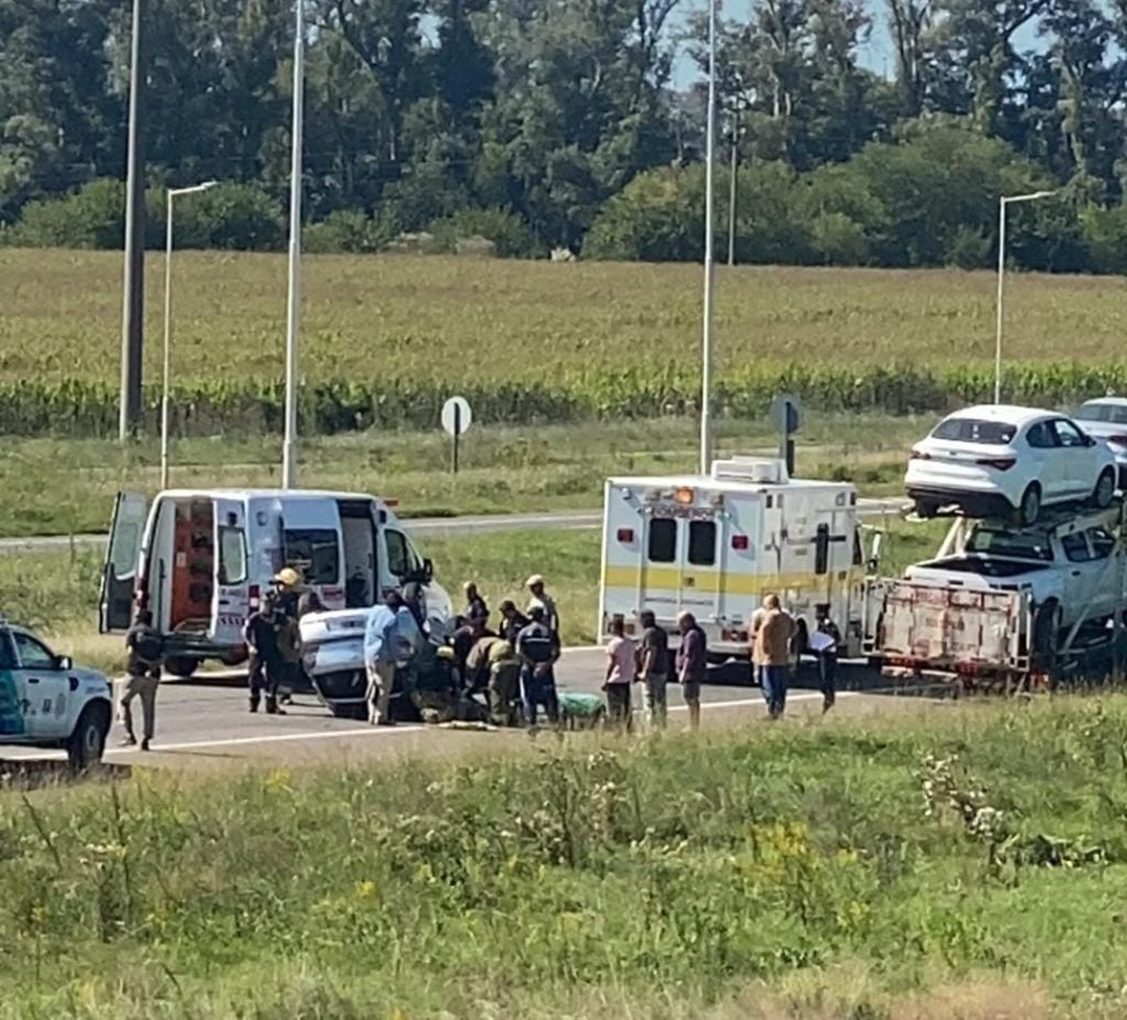 En horas de la tarde una mujer padeció un siniestro vial cuando volcó con su automóvil. Fue a la altura del barrio Loreto en la calzada de ruta nacional n°5. Según se supo la ocupante del vehículo quedó atrapada.