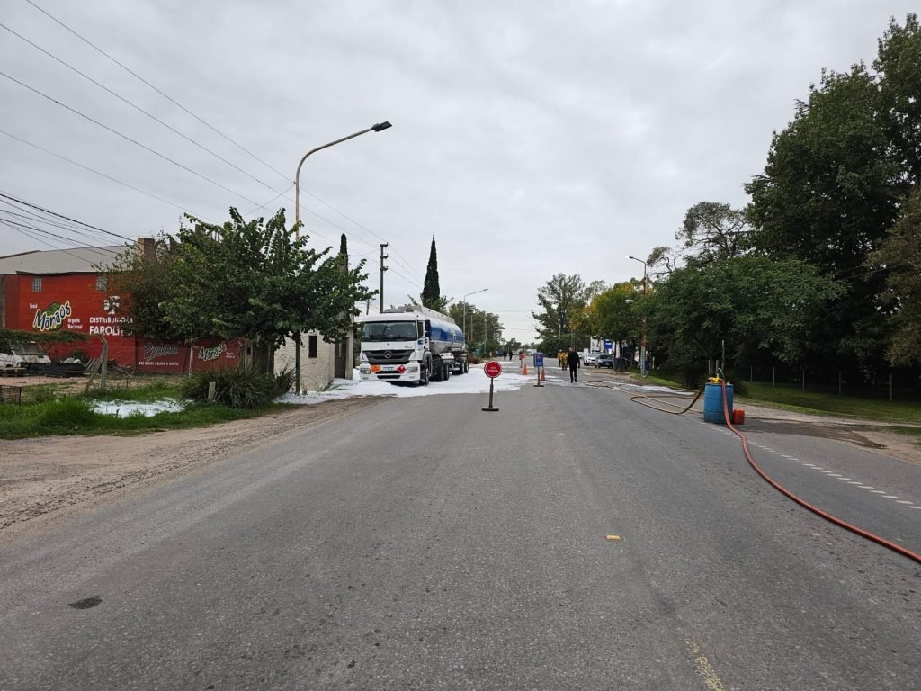 El acontecimiento provocó el cierre total de ambas mandos de la avenida dado que debió actuar la Policía, Protección Civil y especialmente los Bomberos Voluntarios que con espuma especial para este tipo de siniestros cubrió la zona del derrame por el peligro que implicaba.