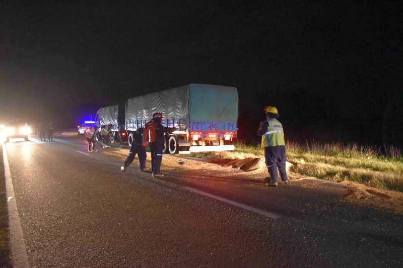 En la noche del sábado se produjo un incidente donde un camión cerealero derramó parte de su carga sobre el trazado de la ruta 5 en jurisdicción de Suipacha.