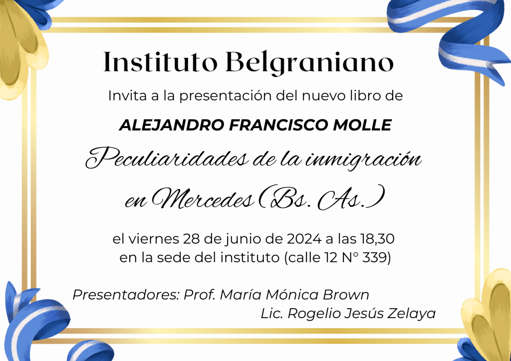 El Instituto Belgraniano de Mercedes invita a la presentación de un nuevo libro de Alejandro Francisco Molle sobre nuestros antepasados europeos. Se trata del segundo texto sobre la temática.