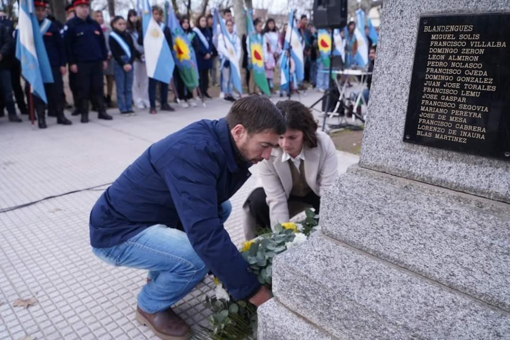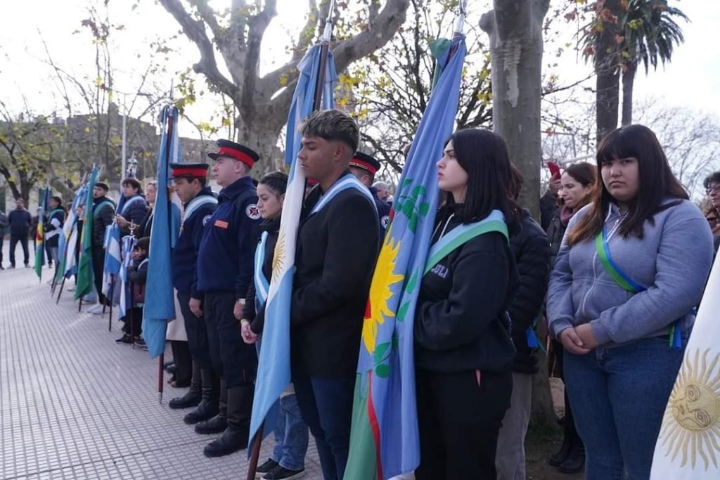 Participaron gran cantidad de instituciones, escuelas, vecinos, vecinas, integrantes del concejo deliberante, en un acto llevado adelante en Plaza Rivadavia donde se encuentra la pirámide que señaliza el origen de nuestra comunidad.