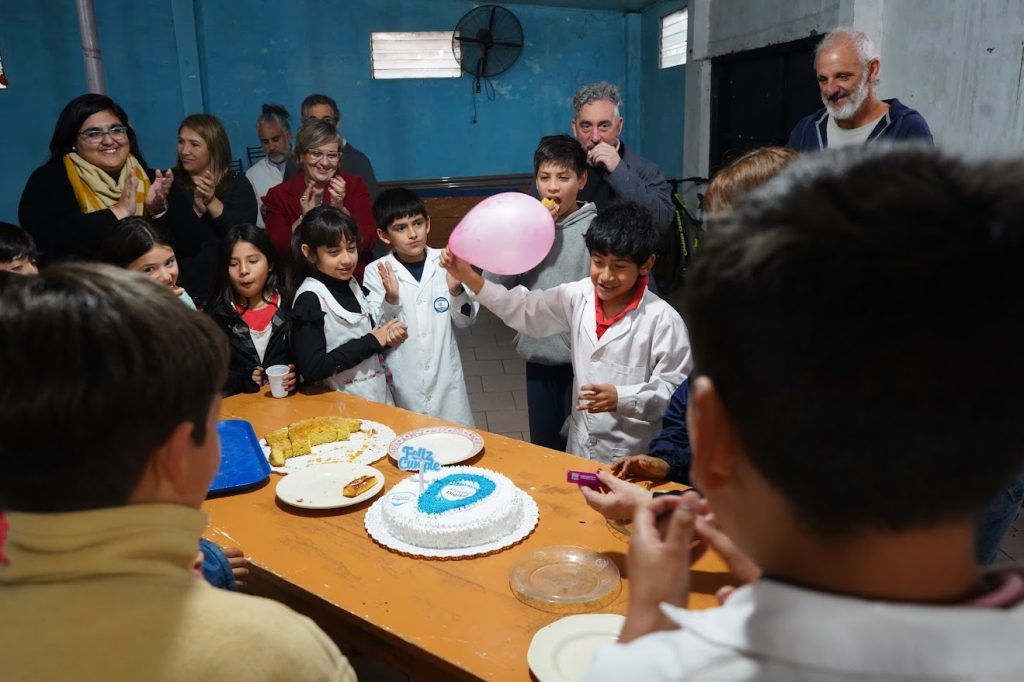 Luego fue el momento de compartir un desayuno con los presentes, entre ellos los alumnos y alumnas de cuarto año de la Escuela N 20. Hubo torta y el tradicional canto de feliz cumpleaños para este Punto Digital de Gowland y Agote.