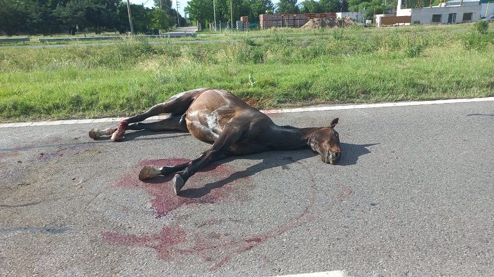 Según se supo un utilitario habría sido quien sin desearlo atropelló y provocó la pérdida de la vida del caballo que estaba suelto sobra la calzada de la colectora y autopista en la mano a Luján.