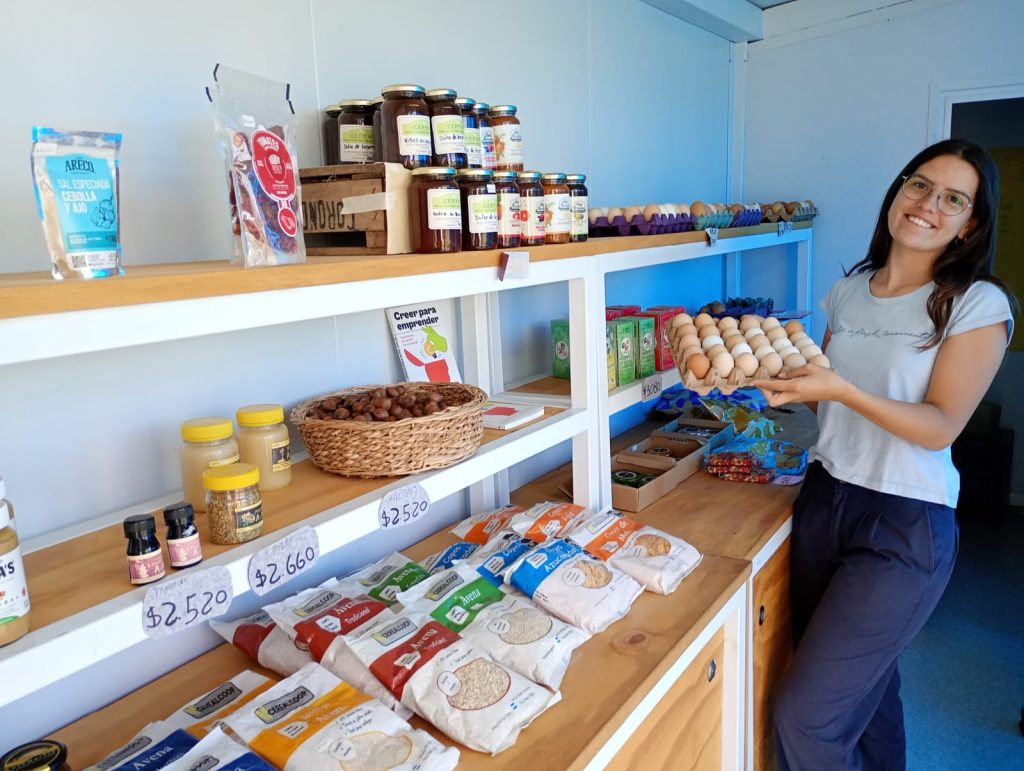 Araí Blanco es quien, todos los días de 9 a 13, abre las puertas de este nodo comercial. Araí es egresada del CEPT 4 y conoce muy bien cuáles son las producciones familiares y también las dificultades que ofrecen su comercialización.