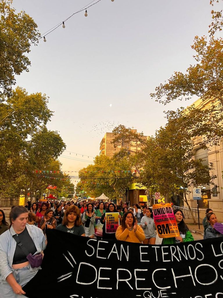 Algunas de ellas expresaban que se marchaba “contra el hambre, el saqueo y la crueldad”, también en el contexto del “paro internacional feminista”, “Unidad as lxs trabajadxs”.