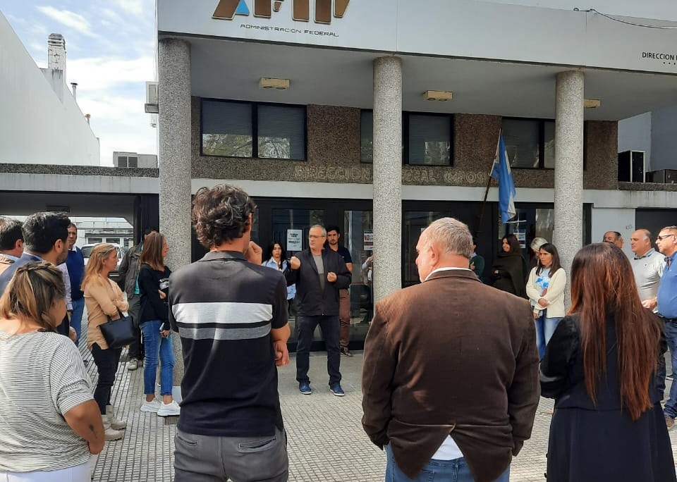 En el marco del plan de lucha anunciado por la Mesa Directiva Nacional del Gremio AEFIP, en defensa de las y los trabajadores, contra el desguace del organismo, y contra el cierre de distritos y receptorías, desde el gremio impositivo de la Seccional Mercedes realizaron una asamblea en la vereda del edificio de la sede local de calle 29 casi esquina 30, este martes a las 11 horas.