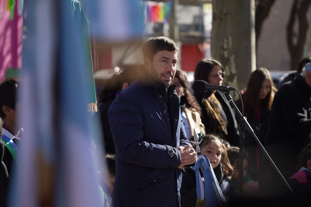 Ustarroz lo primero que hizo fue agradecer “a cada institución educativa presente, las y los abanderados” como así también a “quienes en esta mañana fría generan este encuentro, que abraza a toda la comunidad”.