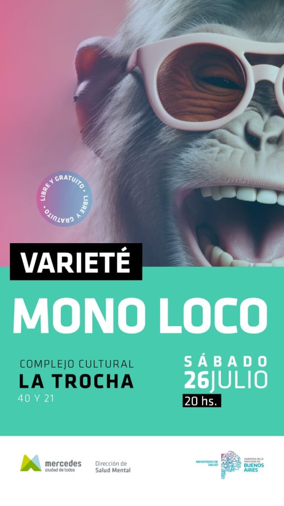 La Dirección de Salud Mental de Mercedes invita a toda la comunidad a ser parte de una propuesta diferente: la varieté “Mono Loco”, un evento artístico pensado para celebrar el encuentro, la creatividad y el trabajo colectivo.