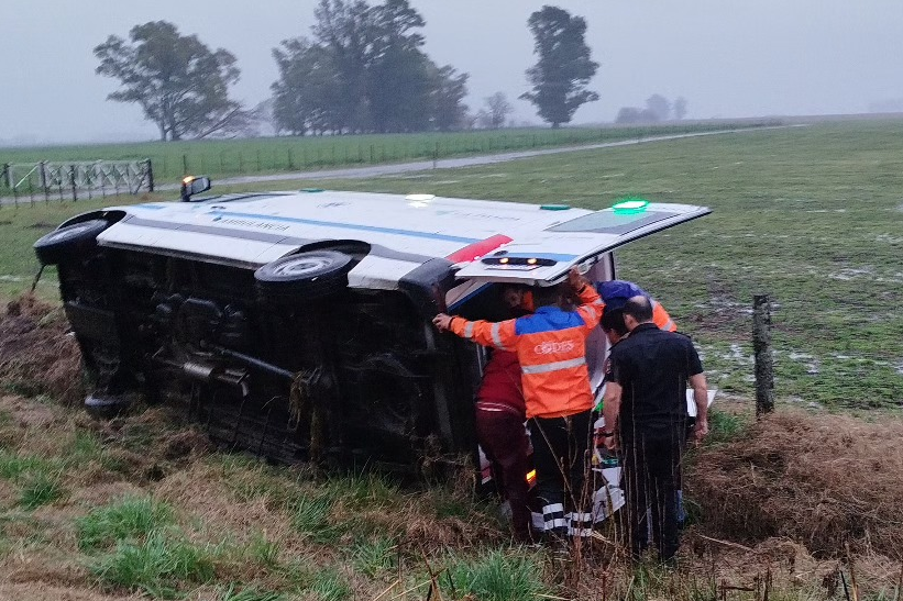 En la mañana de este martes, la ruta 5 fue epicento del despiste y posterior vuelco de una ambulancia, fue en el kilómetro 140, en la jurisdicción del partido de Chivilcoy.
