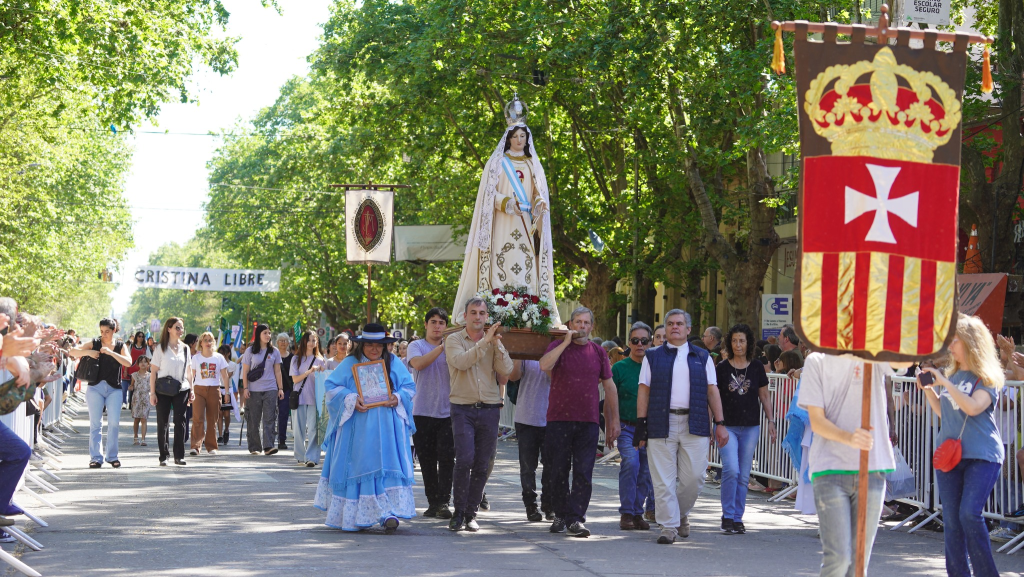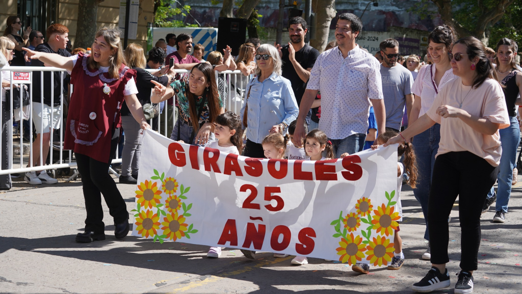 Quienes encabezaron el desfile, luego de la Virgen, fueron las instituciones que en el corriente año celebraron universarios destacados. Es así que pasaron: la E.P. N° 28, que cumplió 75 años, desfiló junto al JIRIMM N° 4; el Jardín Maternal Girasoles celebró sus 25 años; y lo mismo ocurrió con el Jardín Espacios de Amor, que participó junto al Colegio San Luis Gonzaga. También se sumaron el Instituto San Benito, que conmemoró 25 años de nivel primario; la Escuela Secundaria N° 1, que festejó sus 40 años; el C.E.F. N° 193 Gowland, por su primera década; y el Colegio Nuestra Señora de la Misericordia, que si bien cumplió 145 años, conmemoró los 150 años de la llegada de las Hijas de Nuestra Señora de la Misericordia.