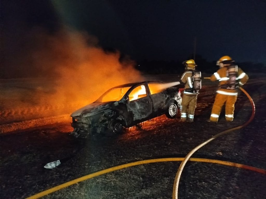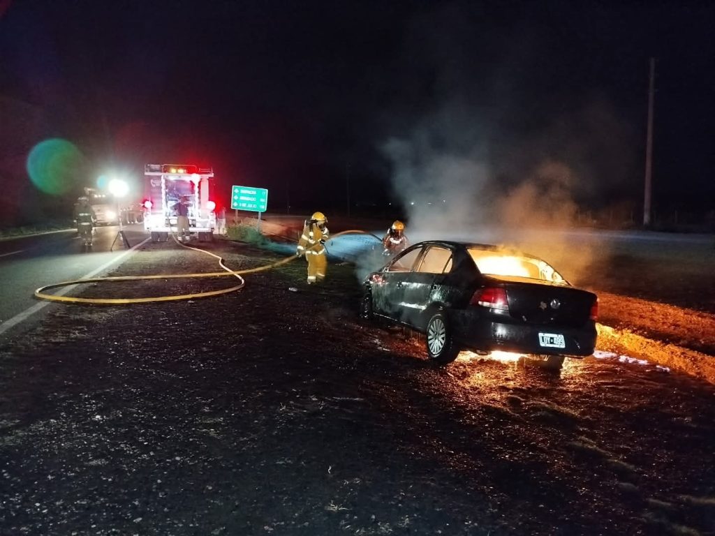 En la noche del sábado se produjo el incendio de un automóvil sobre ruta 5, a pocos metros del ingreso a la localidad rural M. J. García, en el kilómetro 111,300.
