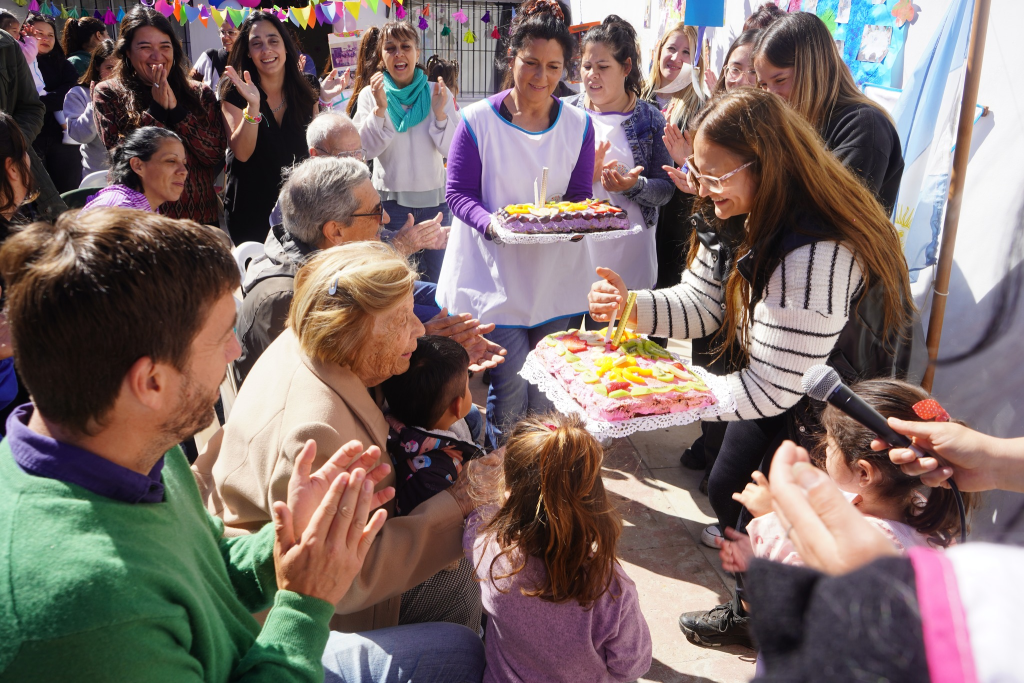 La propuesta se desarrolló en el patio de la institución, con la actuación de Ventolina para las niñas y los niños, tortas de cumpleaños, recuerdos, exposición de fotos históricas y un emotivo encuentro familiar.