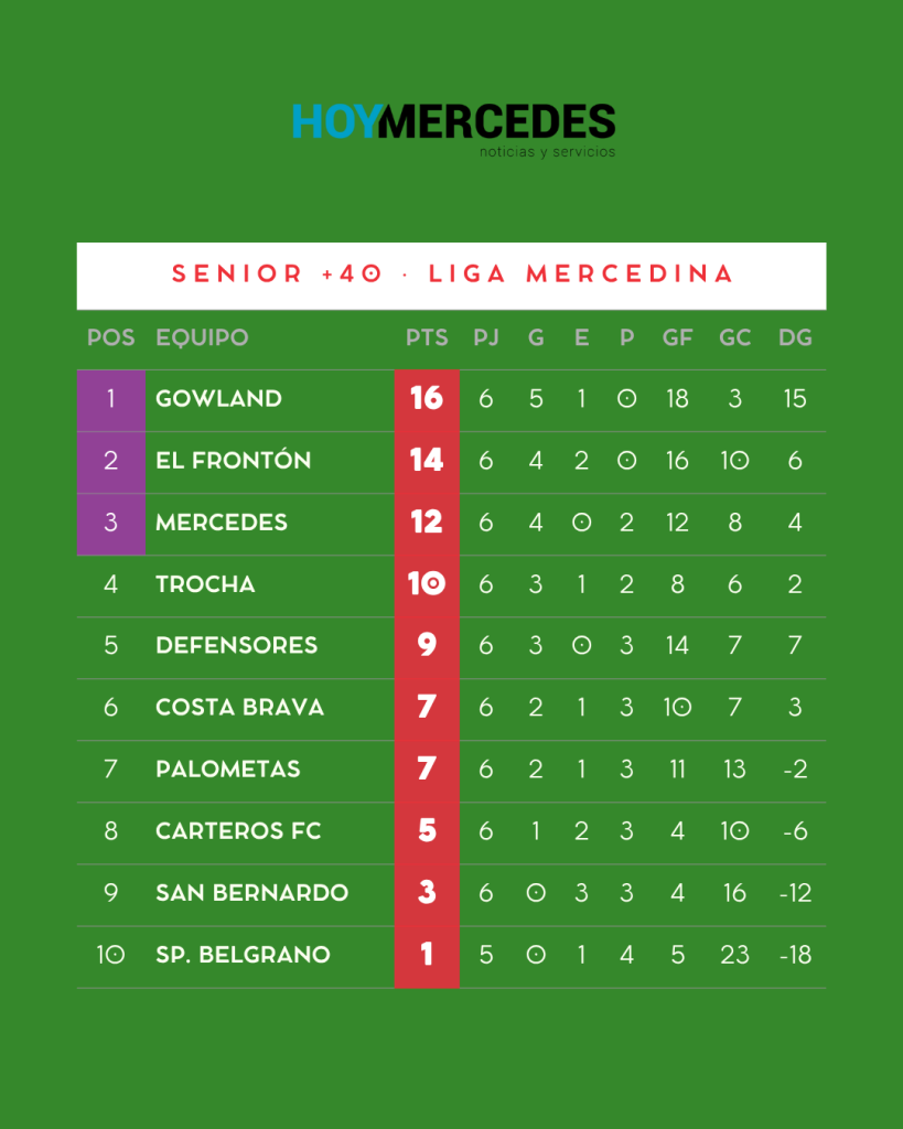 El Fútbol Senior + 40 años de la Liga Mercedina jugó la sexta fecha.