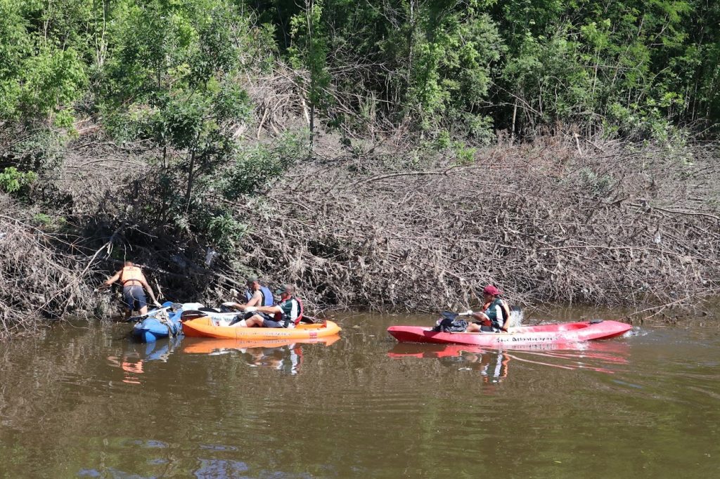 Fueron casi 200 personas, además del equipo de ambiente, que con los resguardos correspondientes, kayak, herramientas y maquinarias efectuaron la tarea, entre ellos equipos de la Pulpería, Cristo Rey, Cooperativas Unidad Mercedes, Estrellas Amarillas, Profesorado de Geografía del Instituto N°7, Sociedad de Fomento Peñaloza, S.O.S Hábitad, Asociación de Food Trucks, Raíces, La Grandiosa, Bonaerenses por el Ambiente, Escuela de Adultos, Veteranos de Malvinas y vecinos y vecinas comprometidos.