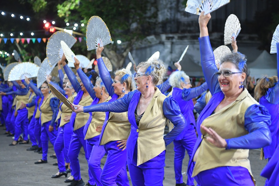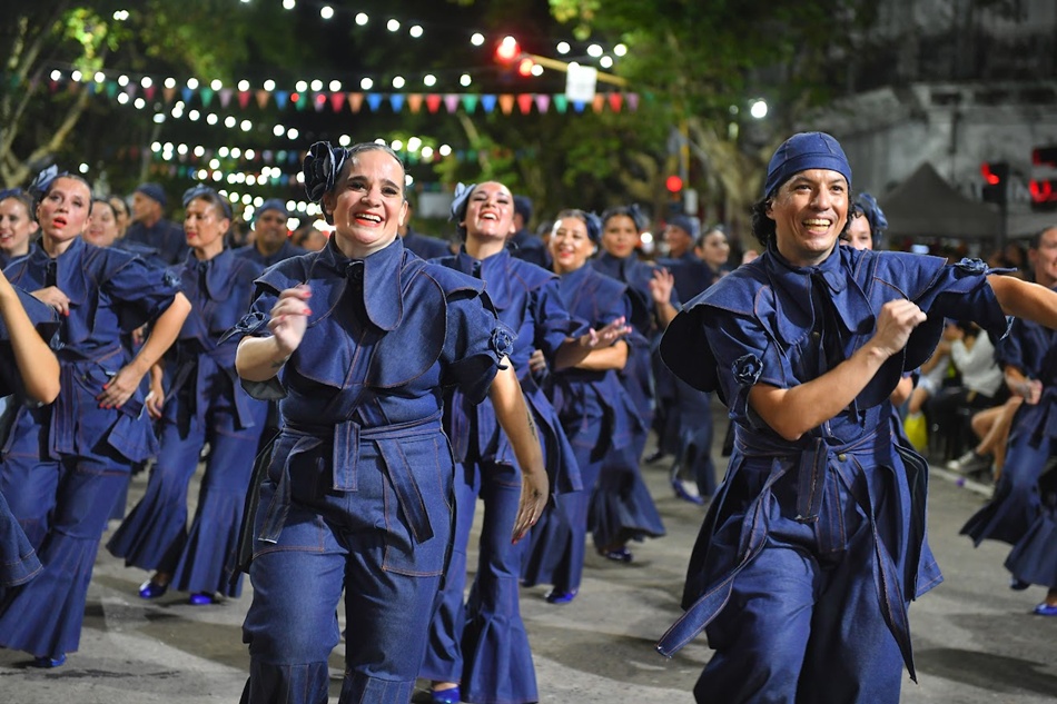 La actuación de la Escuela Mercedina de Carnaval, que dirigen Mónica Garro y Miriam Salanueva, no fue una excepción. Su constante homenaje a la cultura afro brasilera contagió ritmo y alegría en todo su recorrido, apostando a una innovación estética y coreográfica con un número de participantes cada vez más nutrido.