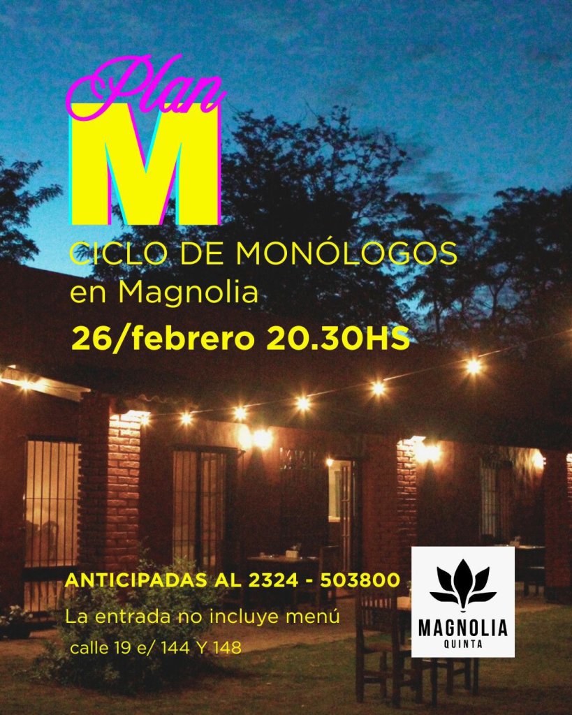 El ciclo teatral “Plan M” tendrá una nueva presentación en la ciudad: será el jueves 26 de febrero desde las 20:30, cuando el espacio cultural y gastronómico Magnolia Quinta —ubicado en calle 19 entre 144 y 148— se transforme en el escenario de esta propuesta escénica.