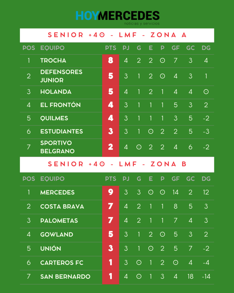 En la Zona A, el liderazgo quedó en manos de Trocha, que logró una importante victoria frente a Estudiantes. Por su parte, en la Zona B, Club Mercedes se impuso con contundencia en San Andrés de Giles al vencer a San Bernardo, resultado que le permitió al conjunto “blanquinegro” ubicarse en lo más alto de la tabla.