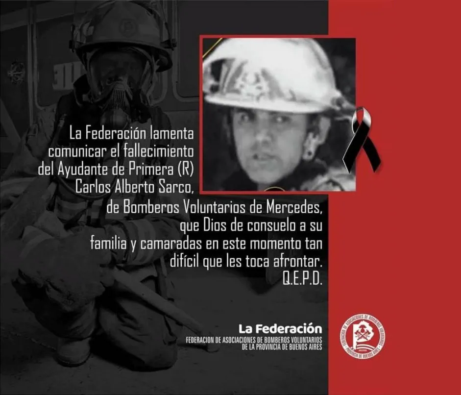 La comunidad de Mercedes se vio conmocionada por el fallecimiento de Carlos Alberto Sarco, reconocido bombero de la ciudad, ocurrido en las primeras horas del lunes. La noticia fue confirmada por el segundo jefe del Cuerpo Activo, Alejandro Mazza, quien expresó la sorpresa y el pesar de sus compañeros tras conocerse el hecho.
