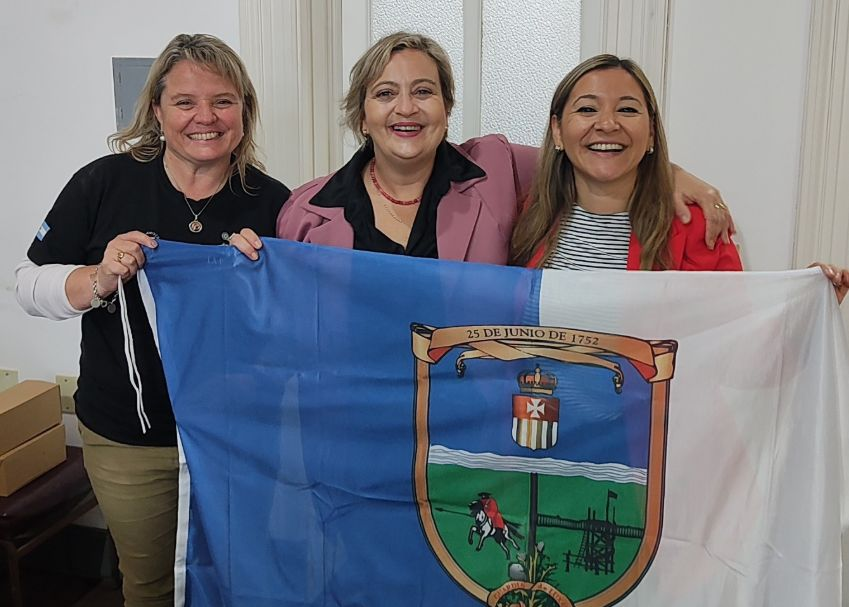 Durante la reunión, que tuvo un fuerte componente simbólico y de proyección productiva, la titular del cuerpo legislativo hizo entrega de una bandera de la ciudad de Mercedes, con el objetivo de que las representantes la lleven como emblema local en sus actividades en Europa.