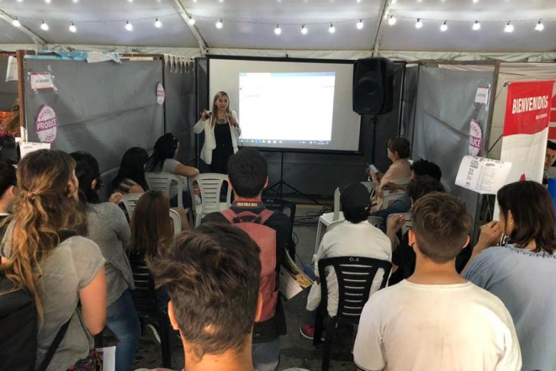 Durante la tarde, en el auditorio de la gran carpa instalada sobre la Avenida 29, representantes de las Mujeres CEM aportaron exposiciones TED motivacionales orientadas principalmente a los estudiantes del último año del secundario y a personas que recién inician un emprendimiento.