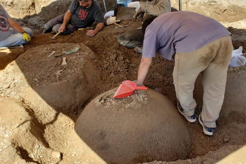 “La particularidad que tienen estos restos, que serían de dos gliptodontes, es que están en posición de vida. Muchos de los hallazgos de gliptodontes que se dan en la provincia están las caparazones invertidas, eso es una característica interesante para analizar”, continuó Messineo, quien estimó que los restos tendrían una data aproximada de entre 10 mil y 50 mil años, en el “Pleistoceno final” explicó. No obstante, aclaró que “todavía casi no hemos excavado”, por lo que las precisiones llegarán con el avance en las tareas.