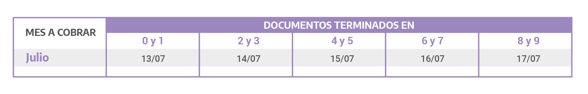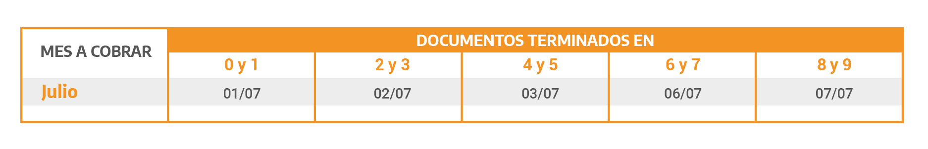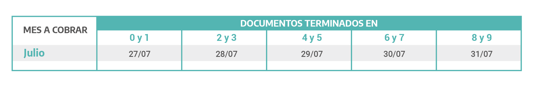 a ANSES informa los calendarios de pago del mes de julio para jubilados y pensionados, Pensiones No Contributivas, beneficiarios de la Asignación Universal por Hijo y por Embarazo, Prestación por Desempleo y Asignaciones Familiares y de Pago Único (Matrimonio, Nacimiento y Adopción).