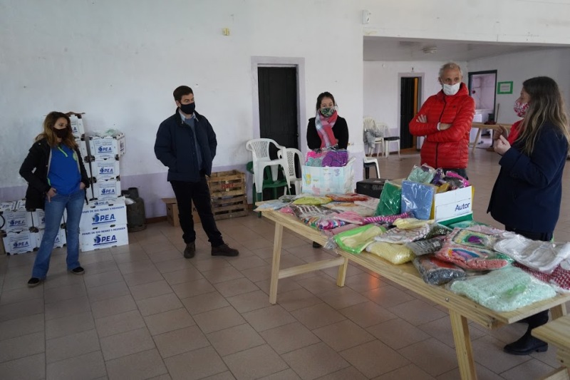 Las Abuelas Tejedoras se y el programa Primeros Mil Días llevaron las prendas tejidas a la Sociedad de Fomento Gowland – Agote para que sean repartidos entre nenes, niños y niñas de la zona rural.