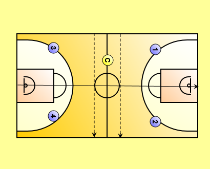 - Las clases serán de 4 jugadores. Teniendo en cuenta que de esta manera tendríamos en una cancha de 14 metros por 28 metros de largo (1 jugador cada 16 metros cuadrados), 1 jugador en cada cuarto de cancha. Tal como se establece en la ilustración.