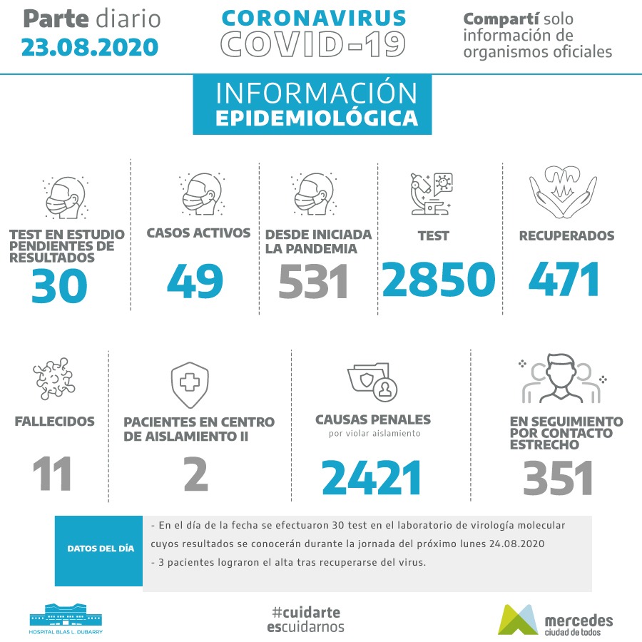 Al día de la fecha tenemos 49 casos activos y 531 desde iniciada la pandemia.