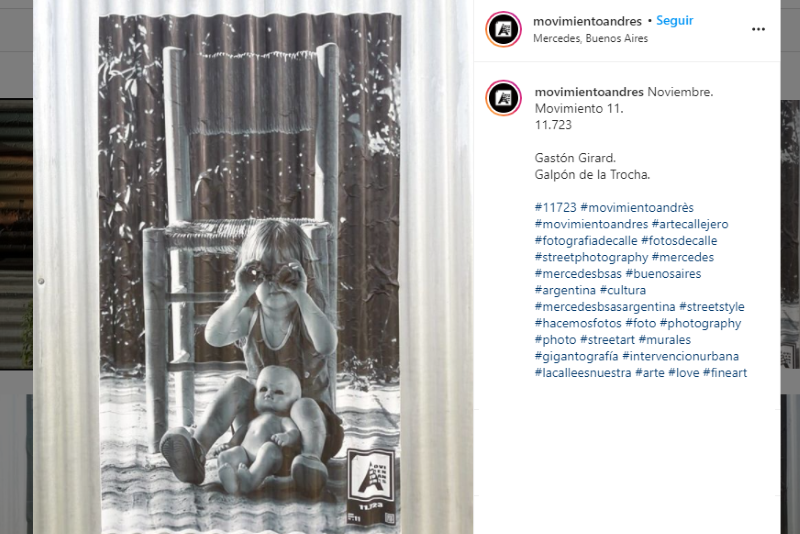 A partir de una propuesta del Movimiento Andrés, en las paredes y chapas que tapan construcciones, las fotografías de autores mercedinos, resaltan en la ciudad. Las imágenes de 32 fotógrafos, algunos profesionales, otros aficionados, algunos multipremiados y otros dando los primeros pasos, son parte de una exposición colectiva fotográfica.