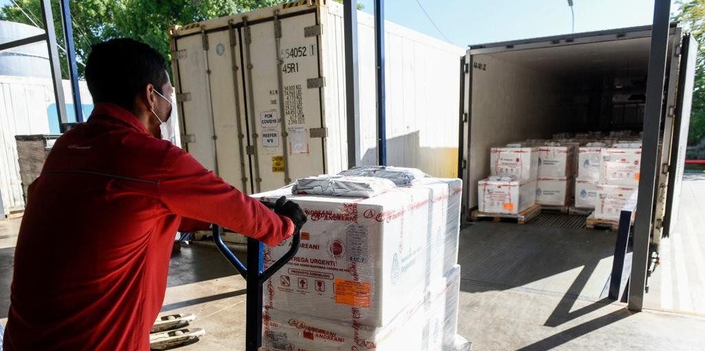 El embarque llegó el jueves último por la noche al Aeropuerto Internacional de Ezeiza en el vuelo AR1051 de Aerolíneas Argentinas. Cada uno de los cargamentos que arriba al país atraviesa por un proceso de desaduanaje, recepción, control térmico, conteo, fraccionamiento y acondicionamiento, para luego ser distribuidas a las 24 jurisdicciones, donde se repite el mismo proceso hasta la llegada a los centros de vacunación.
