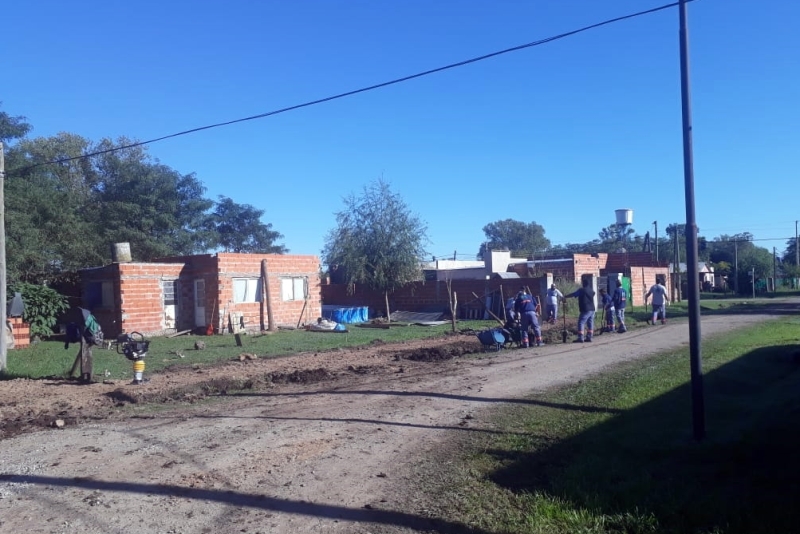 En articulación entre la Subsecretaría y Dirección de Hábitat, Servicios Públicos, Planeamiento, Economía, y el Centro de Referencia Mercedes del Ministerio de Desarrollo Social de Nación con su programa «Potenciar Trabajo», se está llevando a cabo obras de zanjeos, iluminación y veredas en un barrio de la localidad rural Agote.