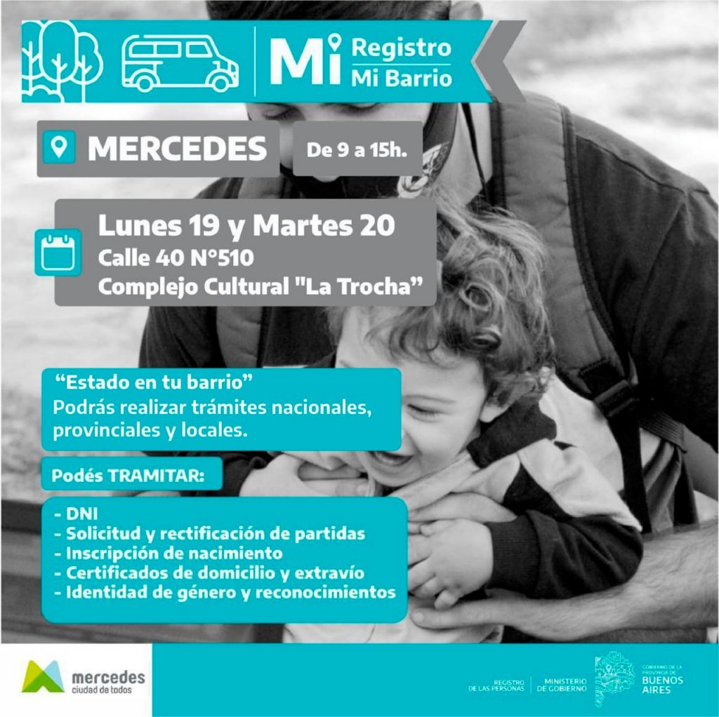 Los días lunes 19 y martes 20 de abril, se realizará un operativo Mi Registro, un programa de la Provincia para realizar trámites de DNI. Entre las 9 y las 15 horas, será en el predio de La Trocha. Darán turnos por orden de llegada. El trámite es gratuito. También estarán los organimos Nacionales, Provinciales y Municipales en el lugar para resolver otros trámites como certificados, cambio de domicilio entre otros. Será obligatorio mantener el distanciamientos y el uso de barbijo.