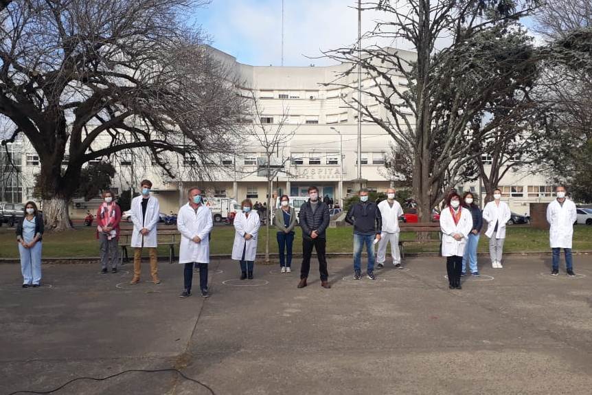 Con el centro de salud de espaldas, el Director del Hospital Pablo Cassiani, acompañado por médicos pediatras del Dubarry y profesionales de la salud de distintas especialidades y el Intendente Juan Ignacio Ustarroz, hicieron pública la noticia que permitirá capacitar a médicos que eligieron la pediatría como especialidad y que tendrán en el hospital escuela provincial como es el Dubarry, un lugar para realizar su residencia.
