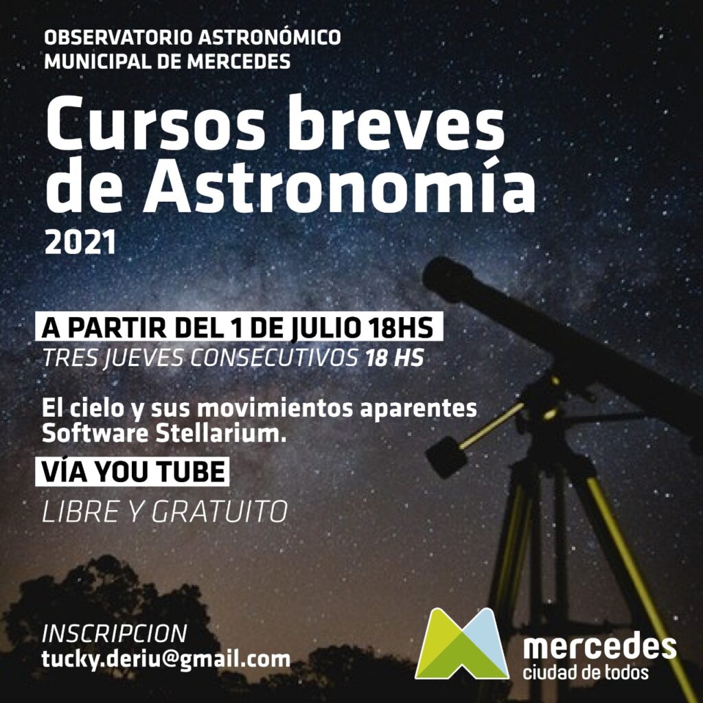 Durante los jueves de julio, el Observatorio Atronómico Municipal «Ing. Di Palma» se estará llevando a cabo un curso breve y virtual de Astronomía. Desde la hora 18, a través del canal de YouTube de Juan Ignacio Deriú – integrante del Observatorio Municipal – se puede aprender sobre «el cielo y sus movimientos aparentes y software stellarium». Las clases están orientadas para adolescentes y adultos.
