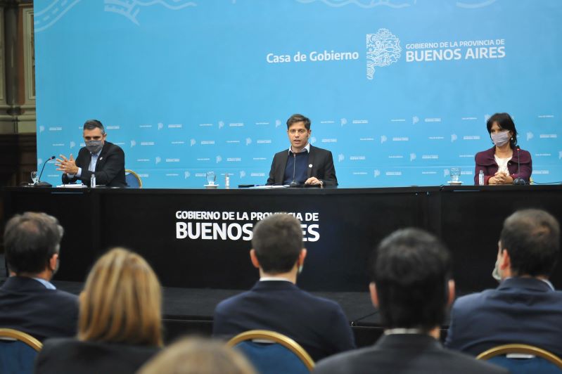 El gobernador de la provincia de Buenos Aires, Axel Kicillof, encabezó esta tarde la presentación del nuevo régimen simplificado de Ingresos Brutos que beneficiará a un millón de monotributistas bonaerenses. Fue en el Salón Dorado de la Casa de Gobierno, junto a la titular de la AFIP, Mercedes Marcó del Pont; y el director ejecutivo de ARBA, Cristian Girard.